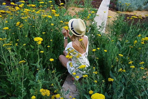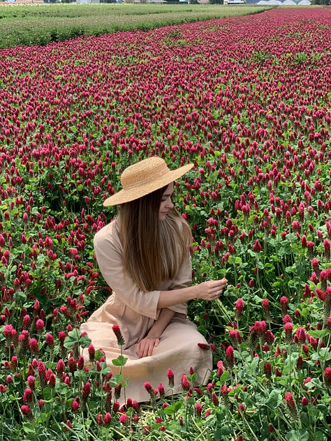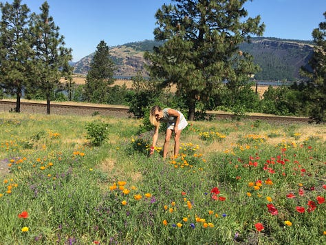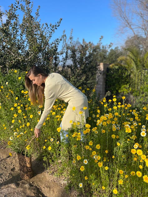 Im so grateful that over the last decade I have visited some of the most breathtaking fields. I have stopped on the side of the road many times just to observe the vastness and wild beauty. I have run across the tulip fields in Oregon with my small children at the time. I saw the Peony Gardens in May and was captivated by the various kinds there are. I’ve sat in a clover field surrounded by honeybees. I stood in a field of Hellebores. I gathered poppies in Neskowin by the sea. I gathered wild queen anne’s lace blooms every summer. I saw the desert wildflowers in the Anza-Borrego Desert. I’ve touched gold yarrow wildflowers in the south of France, stood under the tallest sunflower on the road to Provence, and lost myself in the in the luscious purple fields of lavender fields of the hills. Today, I wander my local trails, gathering wild daises, loquats, lemons and fragrant eucalyptus, carrying the same awe and wonder and serenity I’ve found in the fields around the world, close to home.