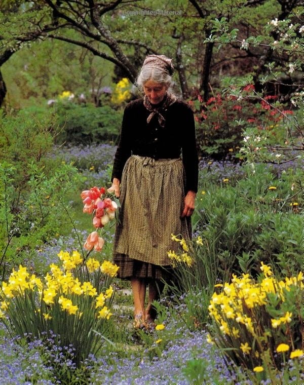 Now I’ll end with Tasha Tudor forever kind of aesthetic. These remarkable photos of Tasha Tudor. If you don’t know who she was (1915–2008) Tasha Tudor was an American illustrator and author of children’s books, known for her delicate, nostalgic watercolor illustrations that evoked 19th-century New England life. She published over 100 books, including classics like Mother Goose. She lived a simple, old-fashioned lifestyle on her Vermont farm that deeply influenced her magical, timeless art. We love her children’s books and I highly recommend to purchase Tasha’s Tudor’s Garden 1994.