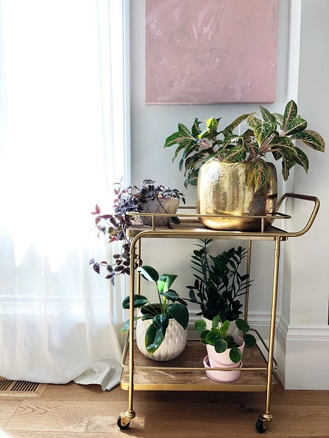 Between 2014 and 2019 I had quite the indoor-plant collection in our old home in Oregon before we moved to Southern California. I admit I had an obsession for a while like everyone else was getting fiddle-leafs and expressing themselves through plants. The very first thing I bought after we built our home was indoor plants, and my favorite setup was a bar cart in the kitchen that I filled with them.